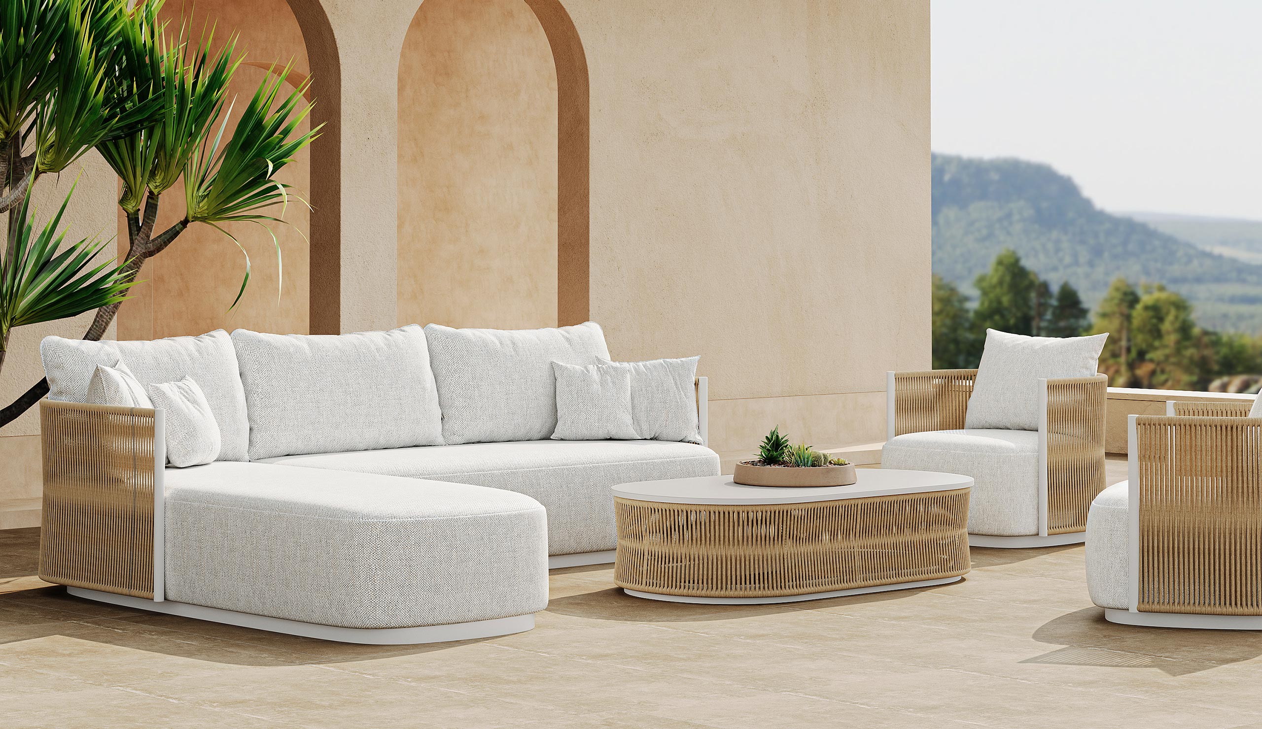 Whether on a sunlit terrace or in a tranquil garden, the Ripple Aluminum Sofa becomes a focal point, allowing people to savor the beauty of nature and embrace every moment of life in comfort.