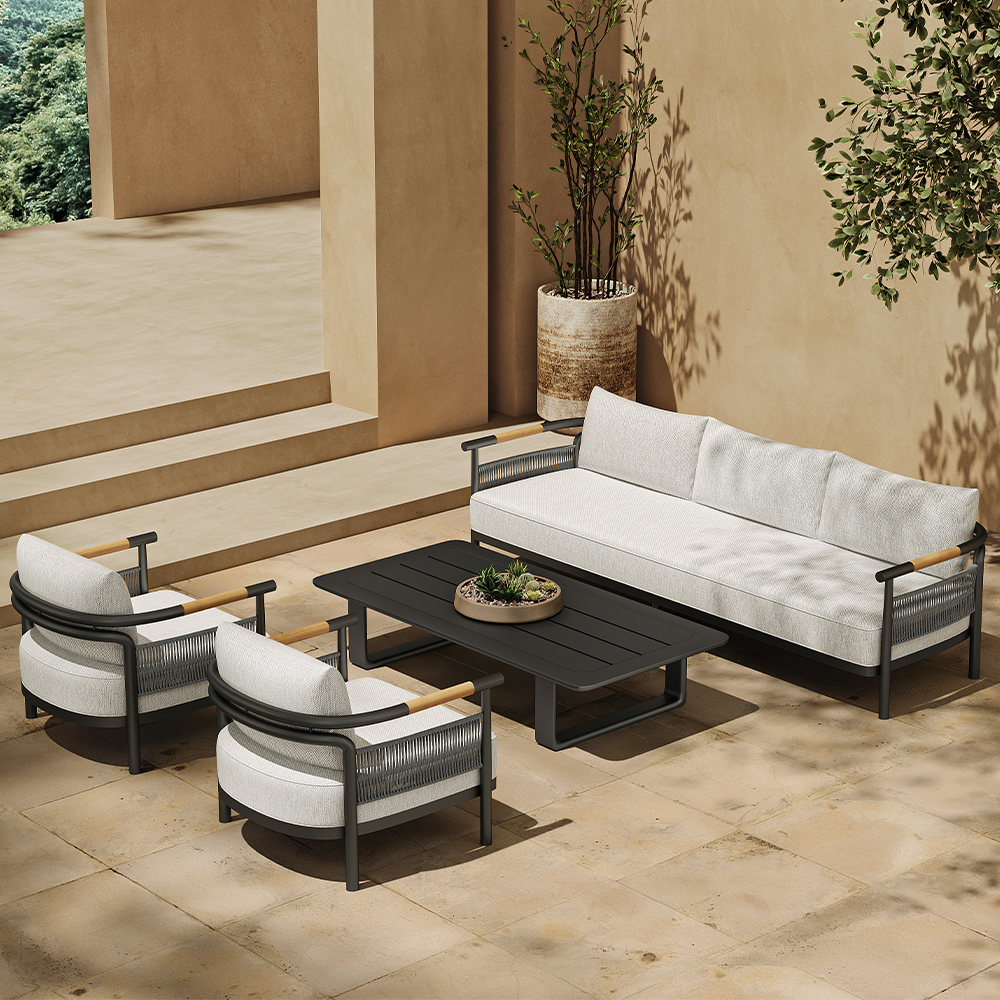 The Zenia Series outdoor sofa is designed to redefine outdoor relaxation. Inspired by the concept of Zen, it focuses on simplicity and tranquility. The minimalist yet stylish lines of the sofa blend effortlessly with any outdoor environment, creating a serene and inviting atmosphere.