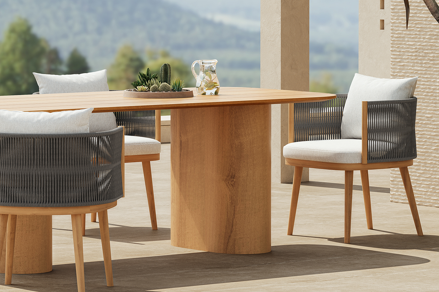 The design concept of the Ripple Teak Dining Chair is deeply rooted in nature's grace. Inspired by the gentle undulations and rhythmic flow witnessed in natural landscapes, it is crafted from premium teak. The teak's natural texture and color variations mimic the organic patterns of nature. The chair's ergonomic form and smooth lines are engineered for both comfort and visual allure. Ideal for any dining setting, indoors or alfresco, it becomes a statement piece that invites users to relish their meals while being in tune with nature's charm and the serenity of the surroundings.