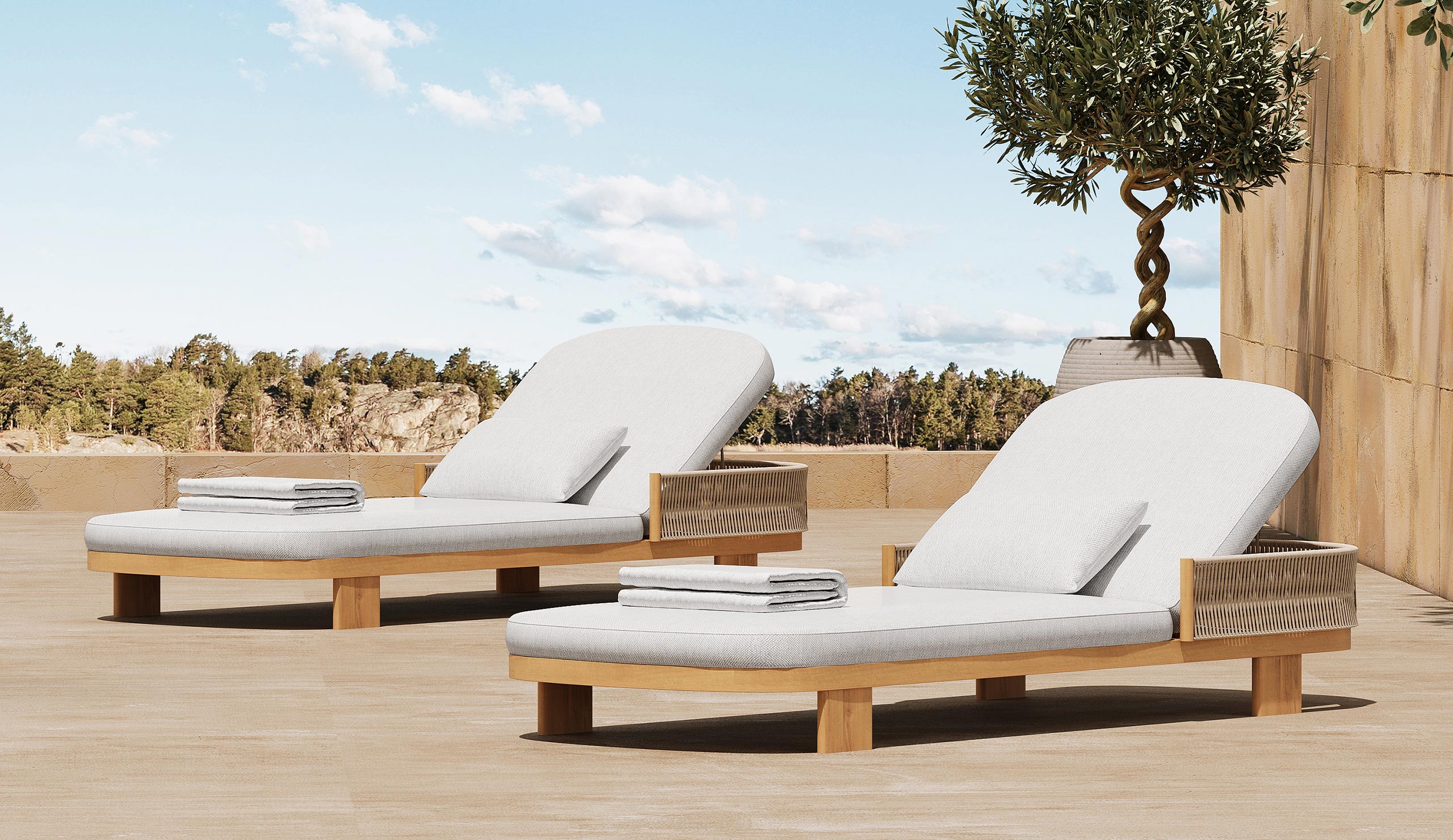 Inspired by the rhythmic patterns of ripples on water, its form exhibits fluid lines and gentle curves. The unique design not only makes a stylish statement but also invites users to unwind and enjoy the outdoors in a luxurious and serene setting, as if floating on a peaceful water surface.