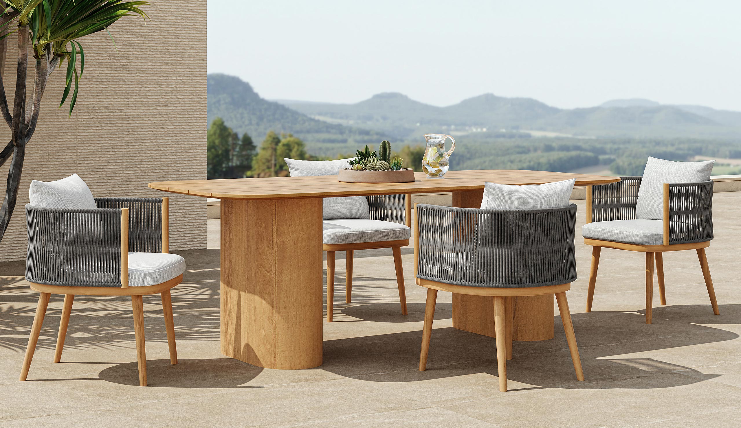 Inspired by the graceful movement of ripples in water, its design features soft, flowing lines that create an elegant and inviting look. It is not just a piece of furniture but a statement of refined outdoor living, inviting people to relax and savor the beauty of nature while dining in style.